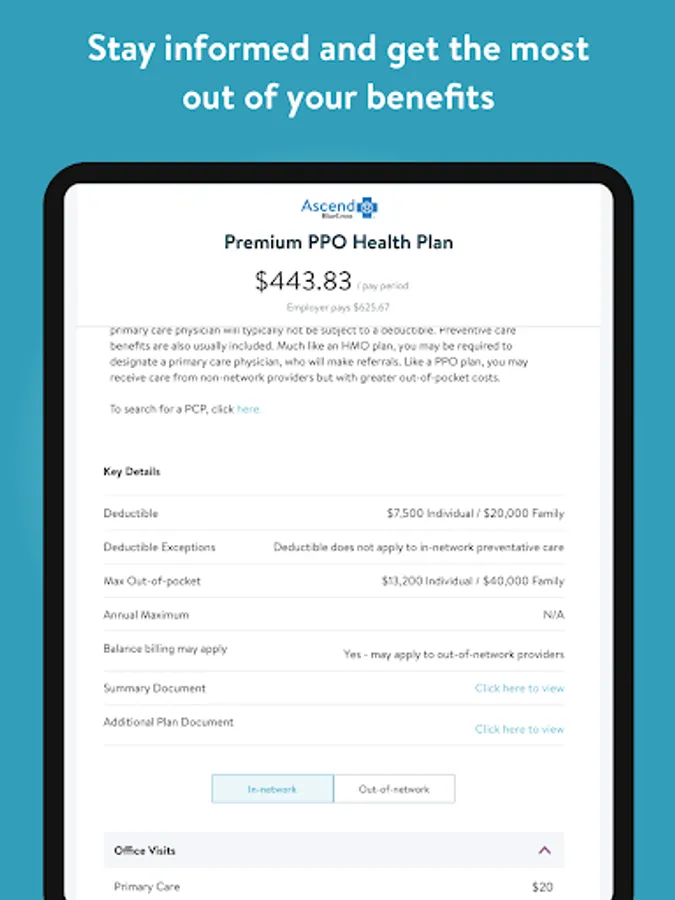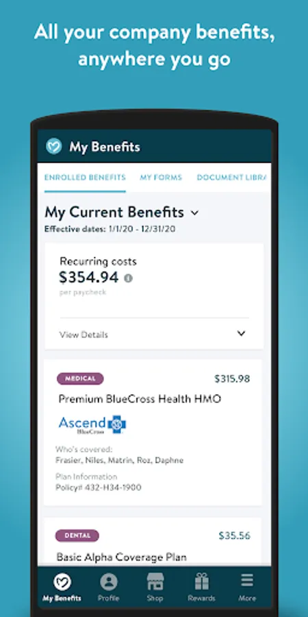 View your benefits on the go. Access your coverage details for benefits like medical, dental, vision, life, disability and healthcare spending accounts.
