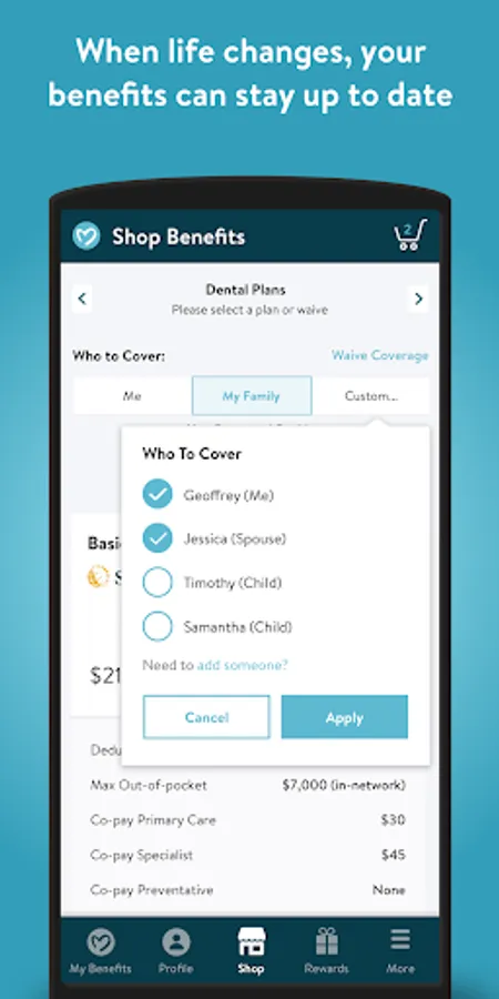 Need to make changes? Open up Maxwell to make important updates to benefits when life events happen, like moving off your parent’s coverage, getting married, or having a baby.