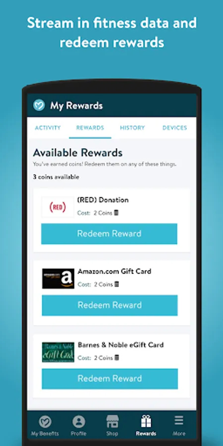 Get rewarded for staying active. Sync data from your Fitbit fitness device or Google Fit app and track the number of steps you take each day. If your employer offers rewards, you can redeem gift cards to stores and charities made available by your employer.