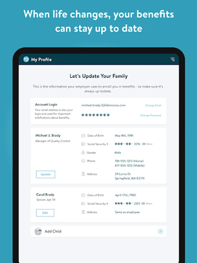If your employer provides you access to Maxwell Health, the Maxwell mobile app makes it easy for you to enroll in, update and access your benefits any time, anywhere. With just a few taps, you can view important details like policy number, member IDs, deductibles, and more. Whether you’re at home, at the doctor, traveling, or anywhere else life takes you, keep your health and other insurance info with you wherever you go.