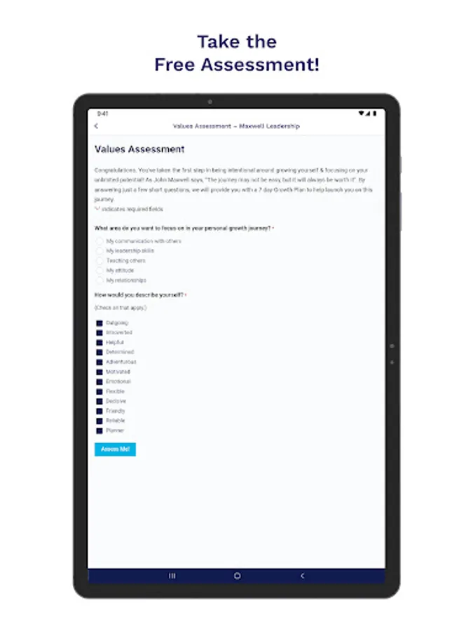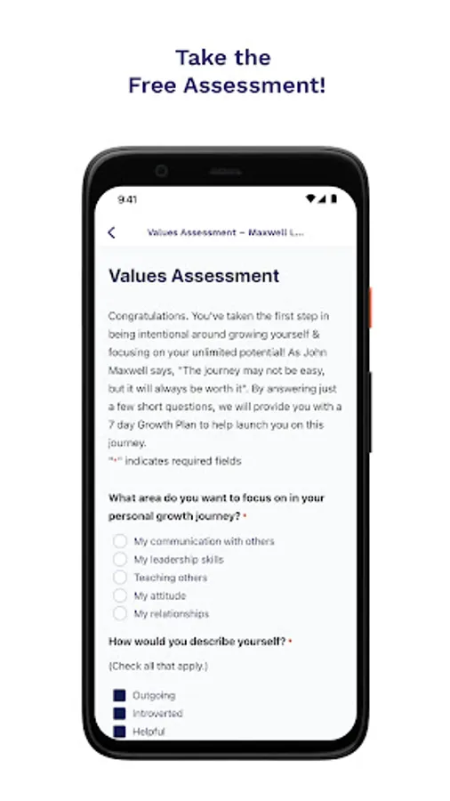 - Personalize your experience. To start, take our free Personal-Growth Assessment to discover what your top values are and immediately being to grow with curated content just for you!
