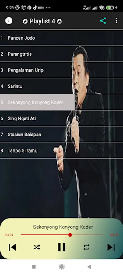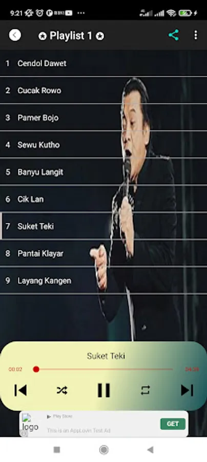 Didi Kempot is a singer and composer of campursari and congdut songs from Surakarta. He is the son of renowned traditional artist, Hadi Suranto (Ranto Edi Gudel) (known as Mbah Ranto), and the younger brother of Srimulat comedian Mamiek Prakoso.