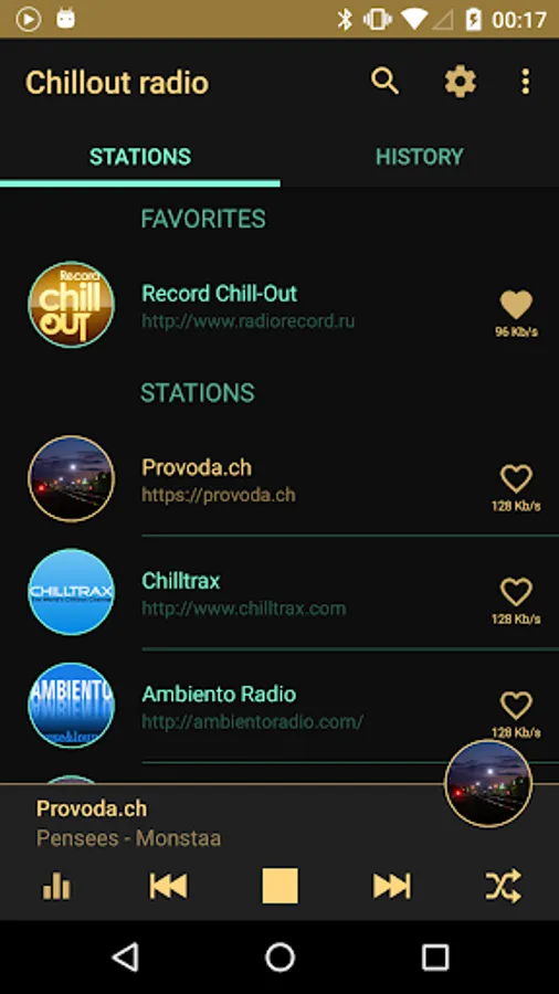 More than 70 radio stations(Chill-out, Lounge, Ambient and others) + new stations every update