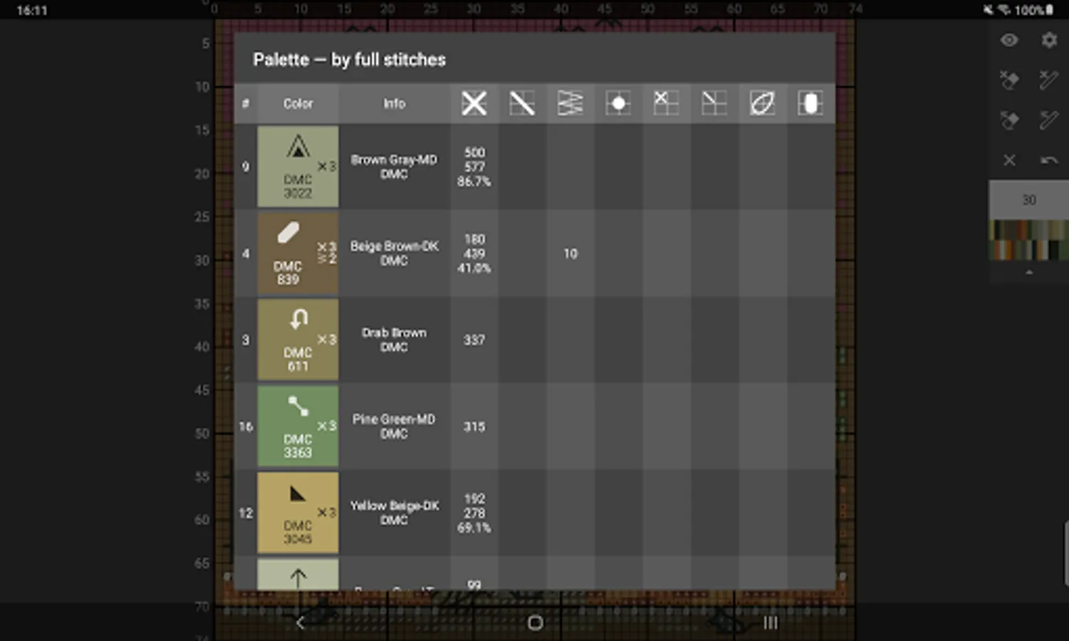 Many functions for working with the pattern's chart will greatly facilitate your embroidery process: color selection, statistics, goals, thread calculator, parking marks, area selection and much more. Instructions will help you understand all the functions. https://cs-paradise.com/instructions