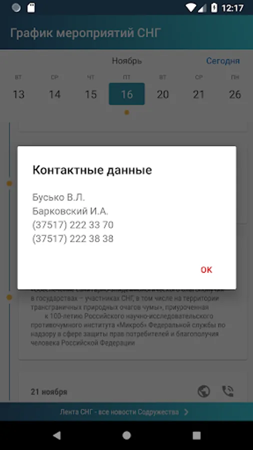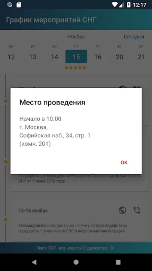 Schedule of events and meetings of expert groups within the CIS for the preparation of draft documents.