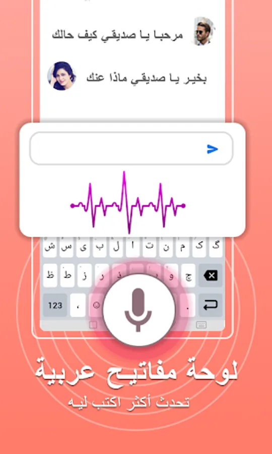 Arabic voice typing keyboard or typing Arabic with voice helps in typing Arabic and speaking Arabic using speech-to-text recognition for typing faster and more efficiently.