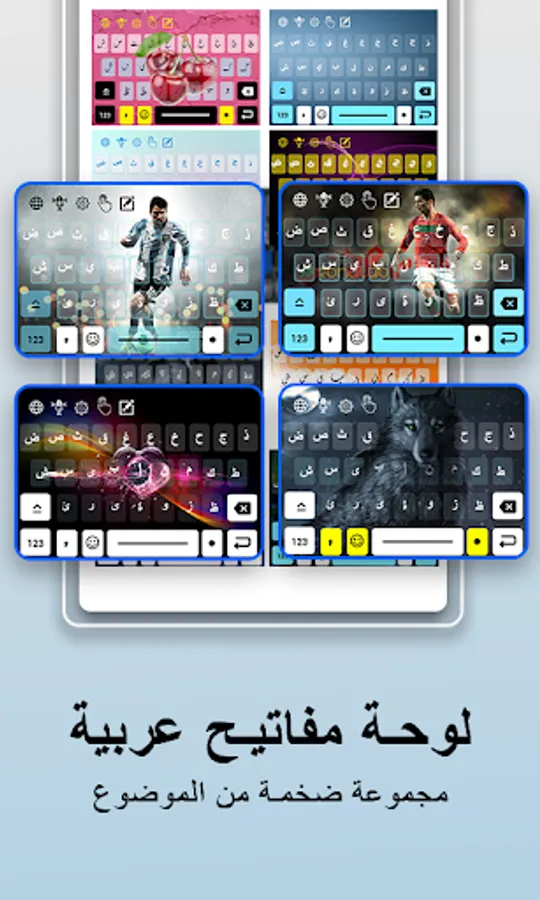 Customize a beautiful Arabic keyboard with photos, designs, GIFs, and colorful themes such as (iPhone theme, neon theme, football stars theme, couple theme, and my photo keyboard with theme). Customize the Arabic swiftkey keyboard, color, size, and styles to make your Design keyboard (DIY keyboard theme).