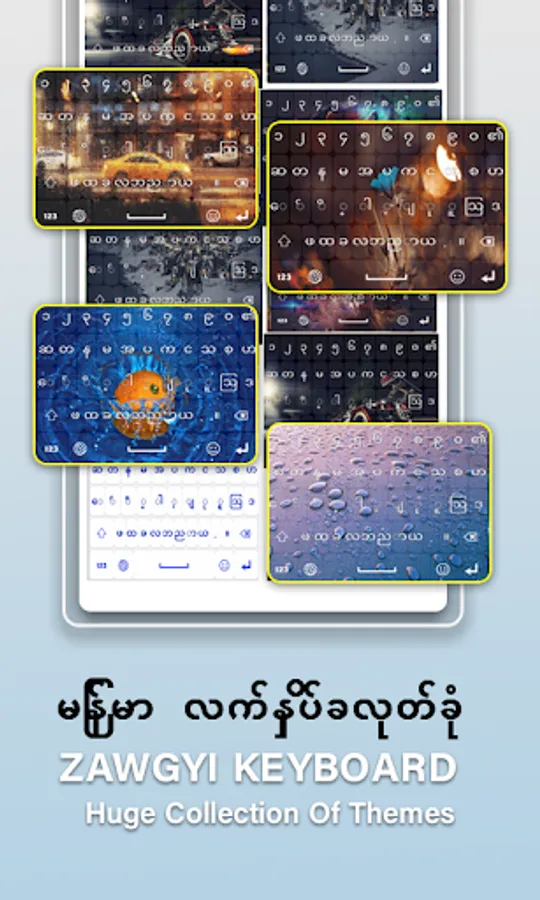 Myanmar typing keyboard is easy and fast typing keyboard that type fast and froz zen keyboard for myanmar for android keyboard apps and Myanmar language keyboard style. 50+ HD themes with Beautiful keyboard themes for girls, Beautiful Themes & Emoji for wa. Enjoy English to Myanmar with cute keyboard themes for boys. Switch Myanmar to English with froz zen keyboard zawgyi and background 3d themes for wa and enjoy custom themes. To make your photo as keyboard background most colorful with keyboard myanmar will provide white background themes for text messages, HD keyboard themes for your phone, customize your device myanmar keyboard zawgyi with emoji font. Myanmar unicode keyboard is mobile keyboard fast typing is full screen layout & changes your keyboard background in Myanmar language.