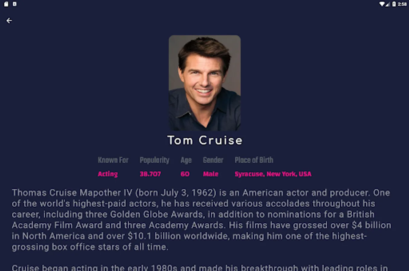 This app shows movies, tv shows, and celebrities' info from the API provided by https://www.themoviedb.org.