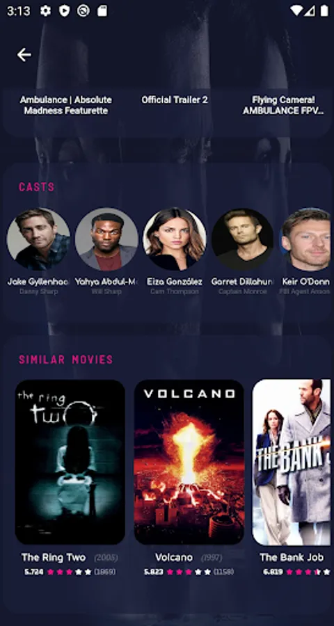 - View the movie detail including movie name, rate, description, actors, trailers, and similar movies.