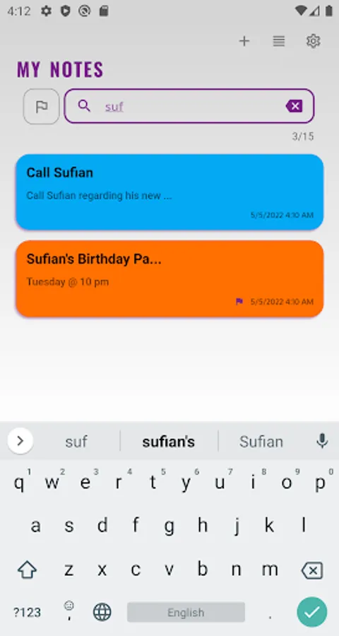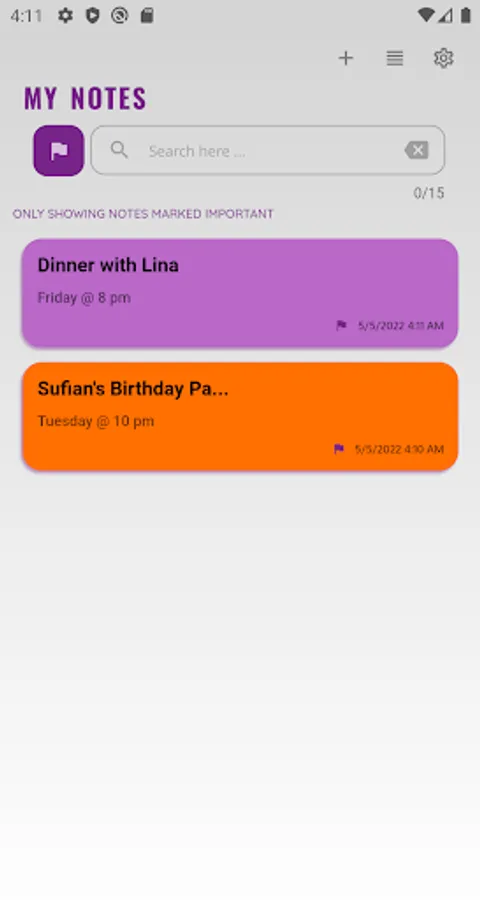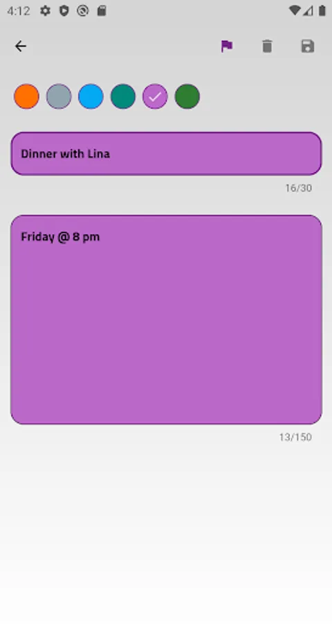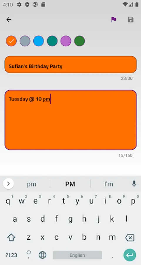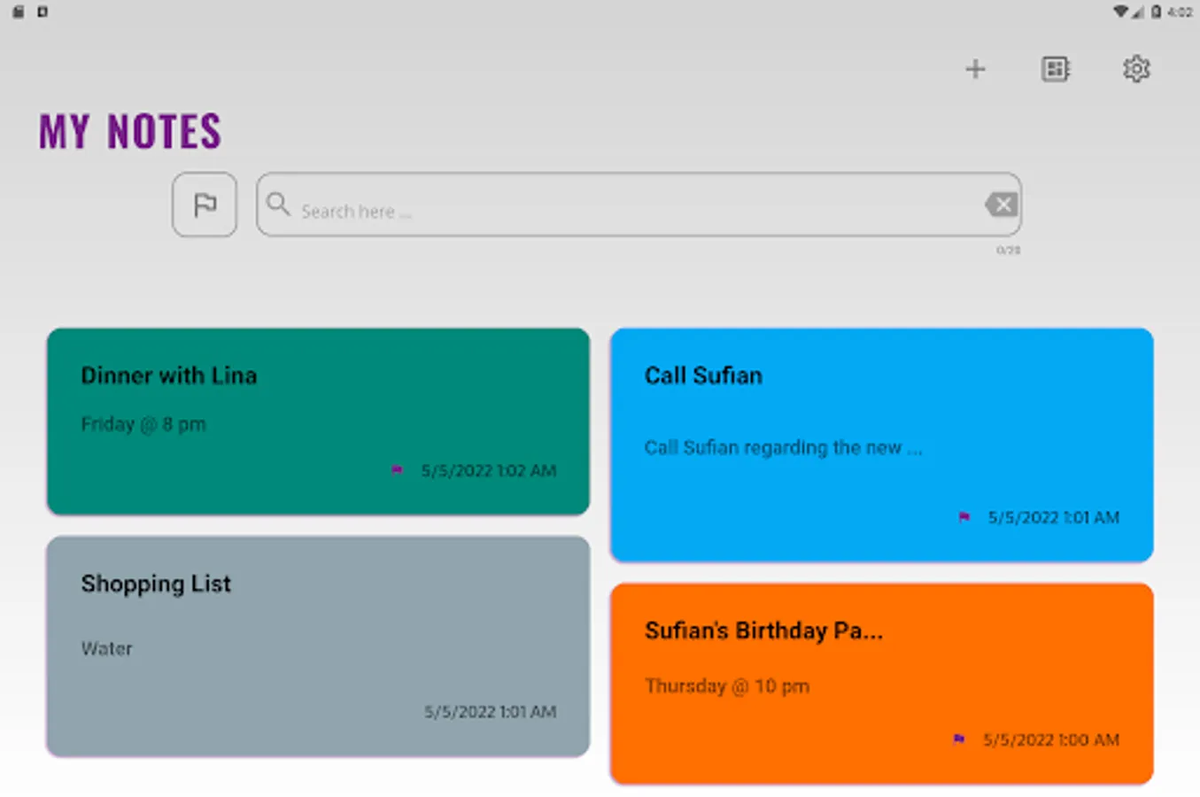 - Click on the (+) icon to add a new note, choose a color and fill in the title and description of the note, you can also mark the note as important if you want.