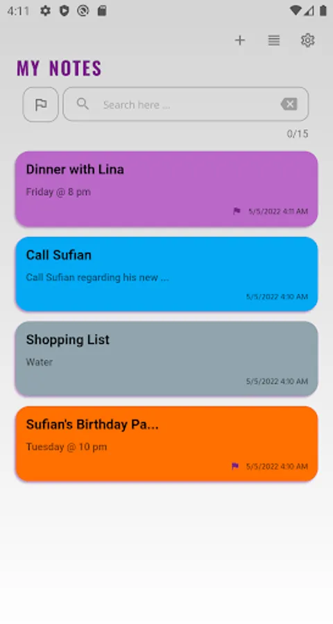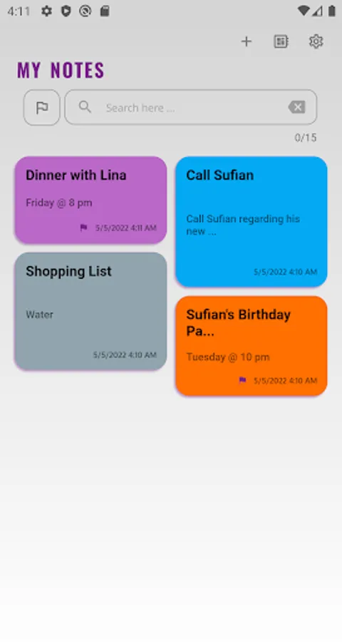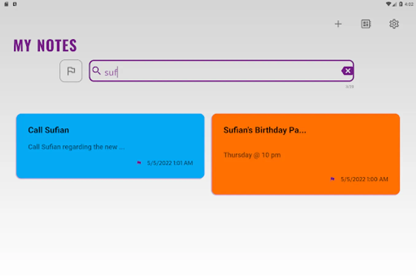 - Click on the Display icon to display the notes as Grid list or normal list.