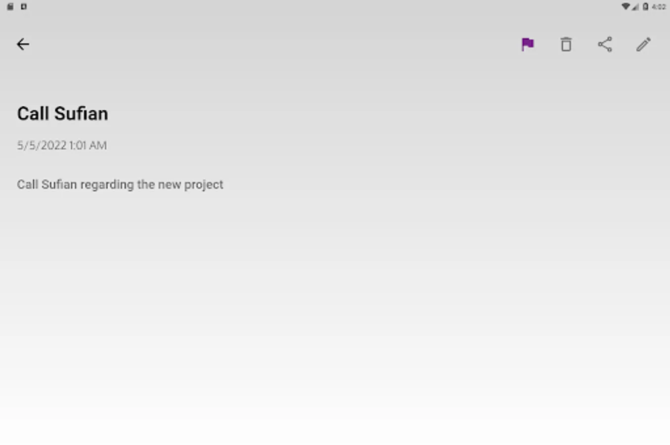 - Click on the note on the home screen if you want to edit the note, delete the note, share the note or if you want to mark/unmark the note as important.