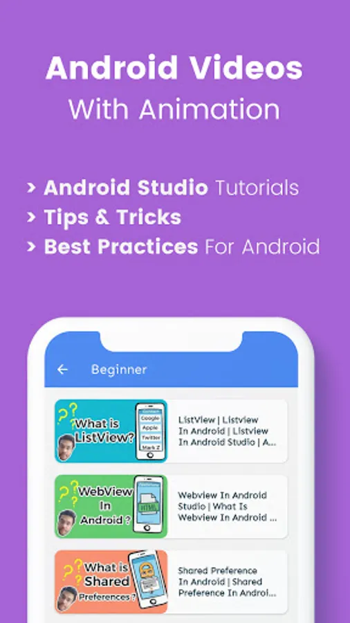 As you can see, this app publishes videos that focus on android development, real practical examples, actionable tips for developers like you.