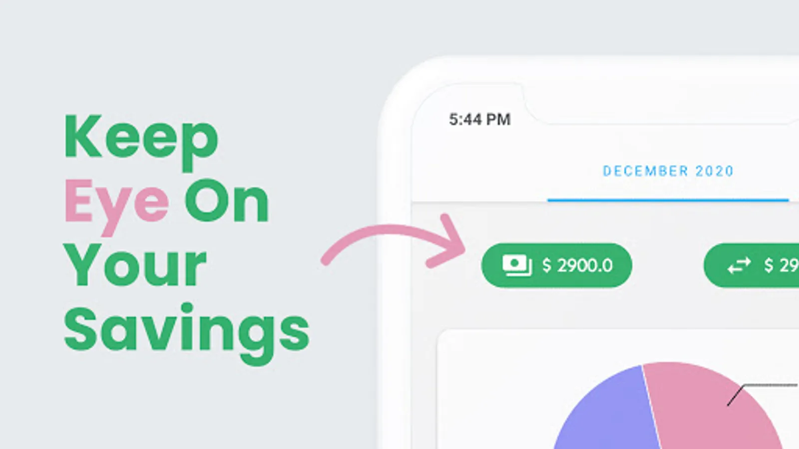 Distribution of your money transactions is shown in a nice and informative way through pie charts.