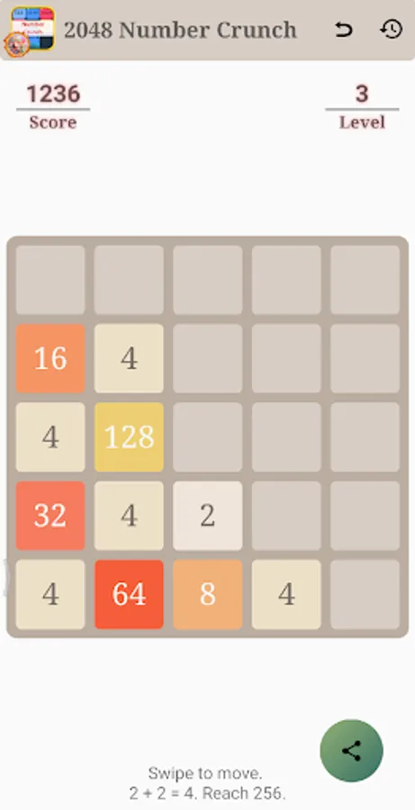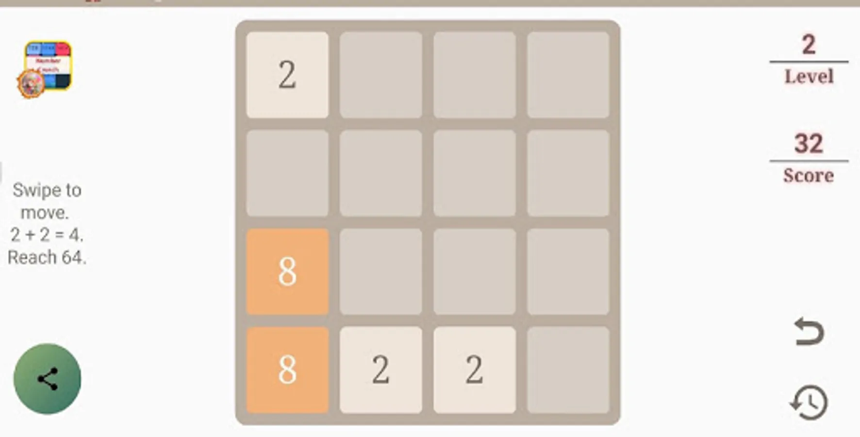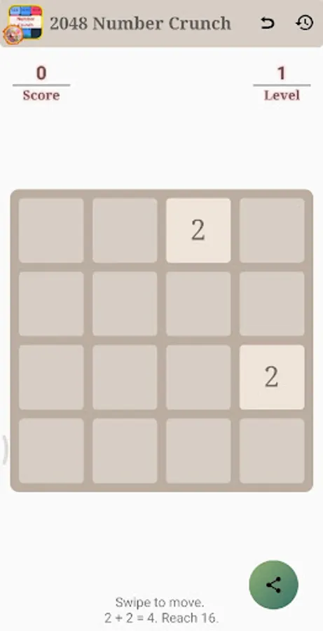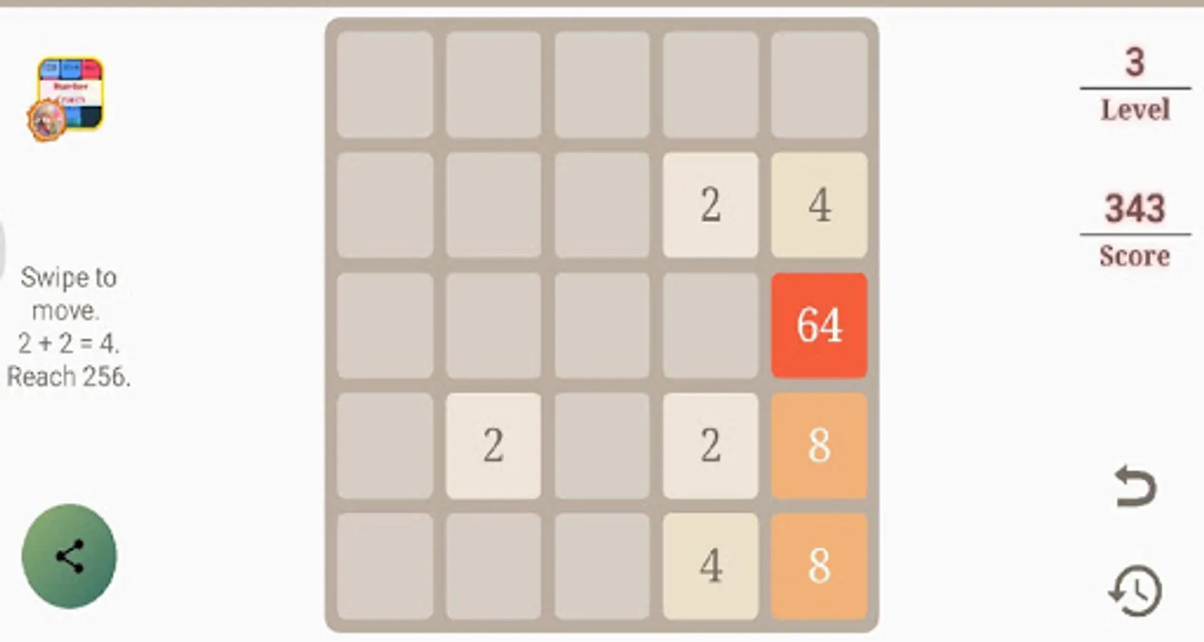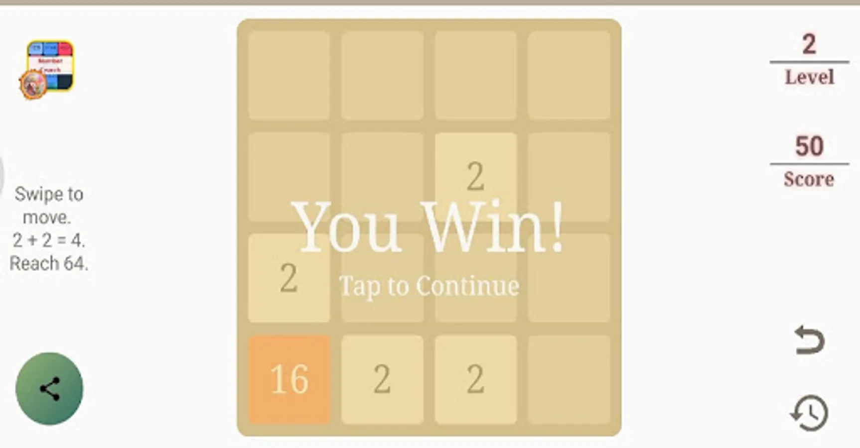 Swipe (Up, Down, Left or Right) to move the tiles. When two tiles with the same number touch, they merge into one.
