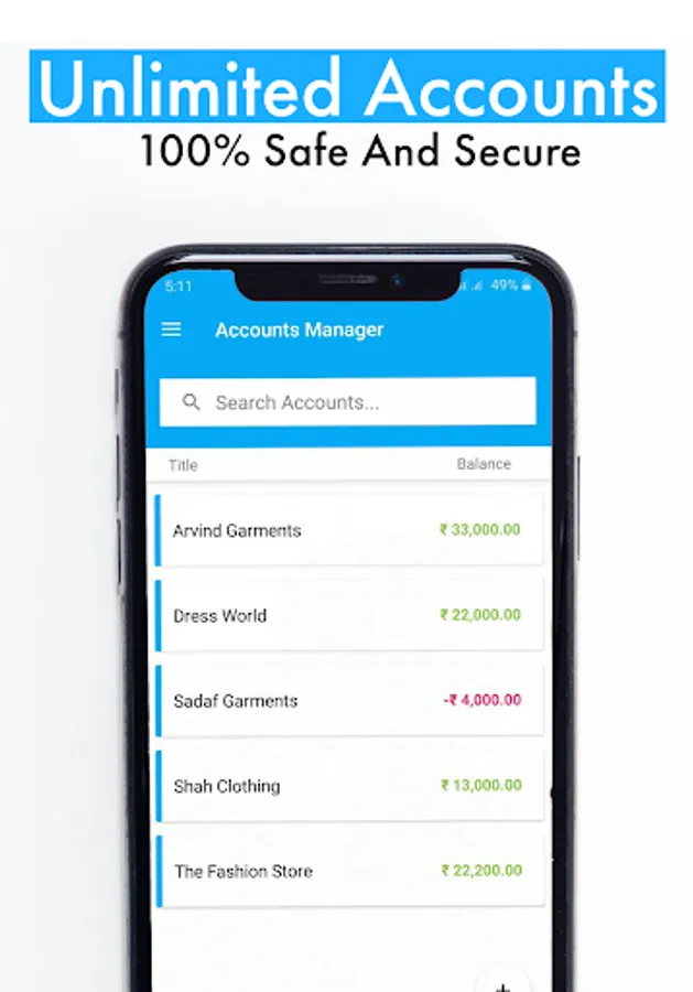 Hisaab Kitaab Accounts Manager can be used as a ledger book, expense tracker or transaction recorder as per your need.
