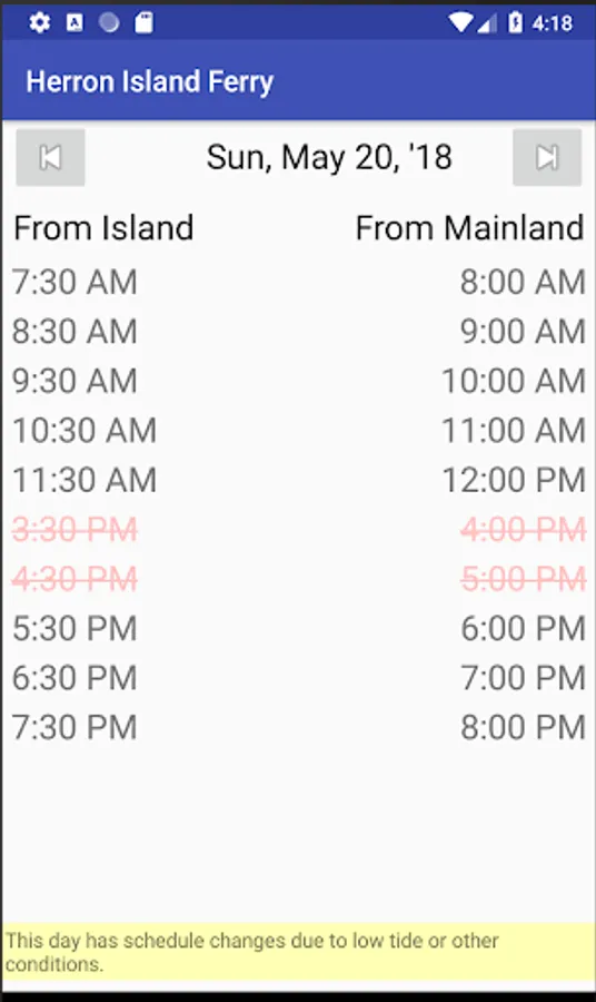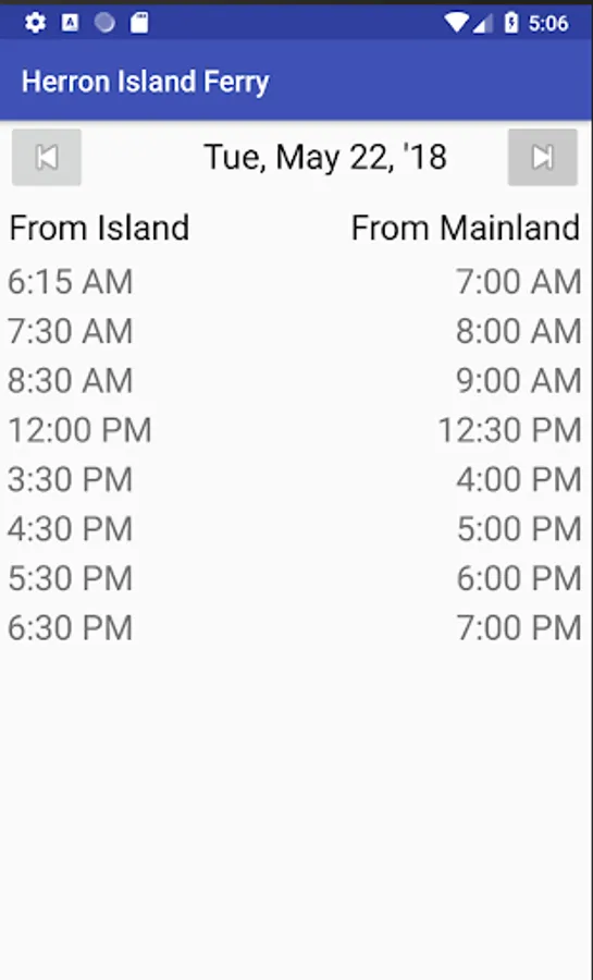 This app provides ferry schedule information for the private Herron Island ferry, based on information published at www.herronisland.org. This app is not sanctioned by any government agency nor the Herron Management Company (HMC).