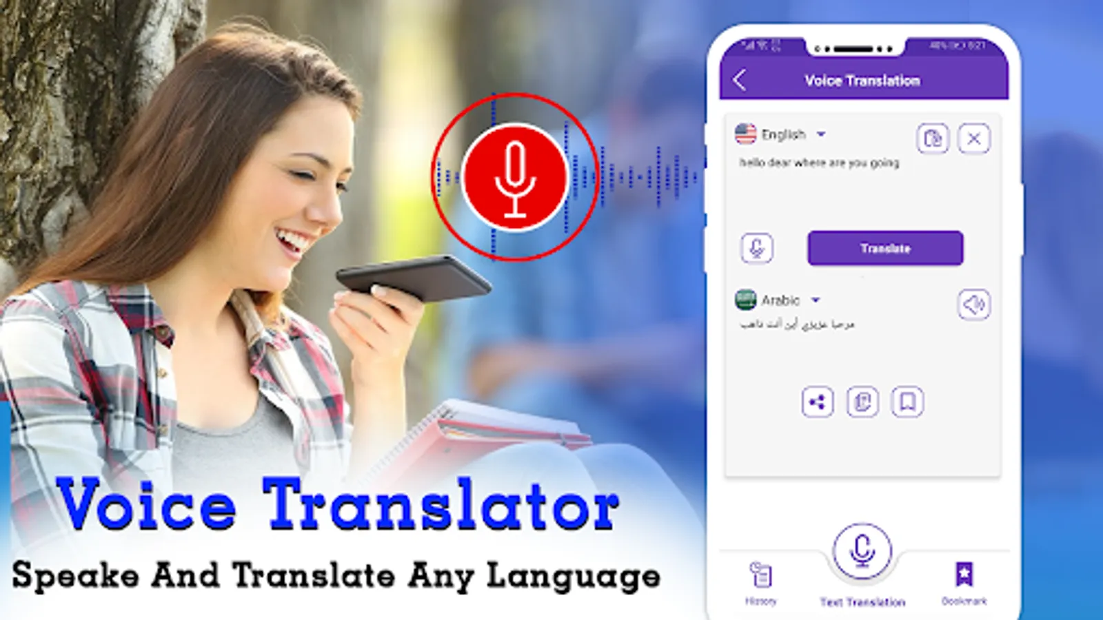 All Language voice translator has the capability of high performance speech recognition to translate voice to voice and transcribe audio or audio file to text.
