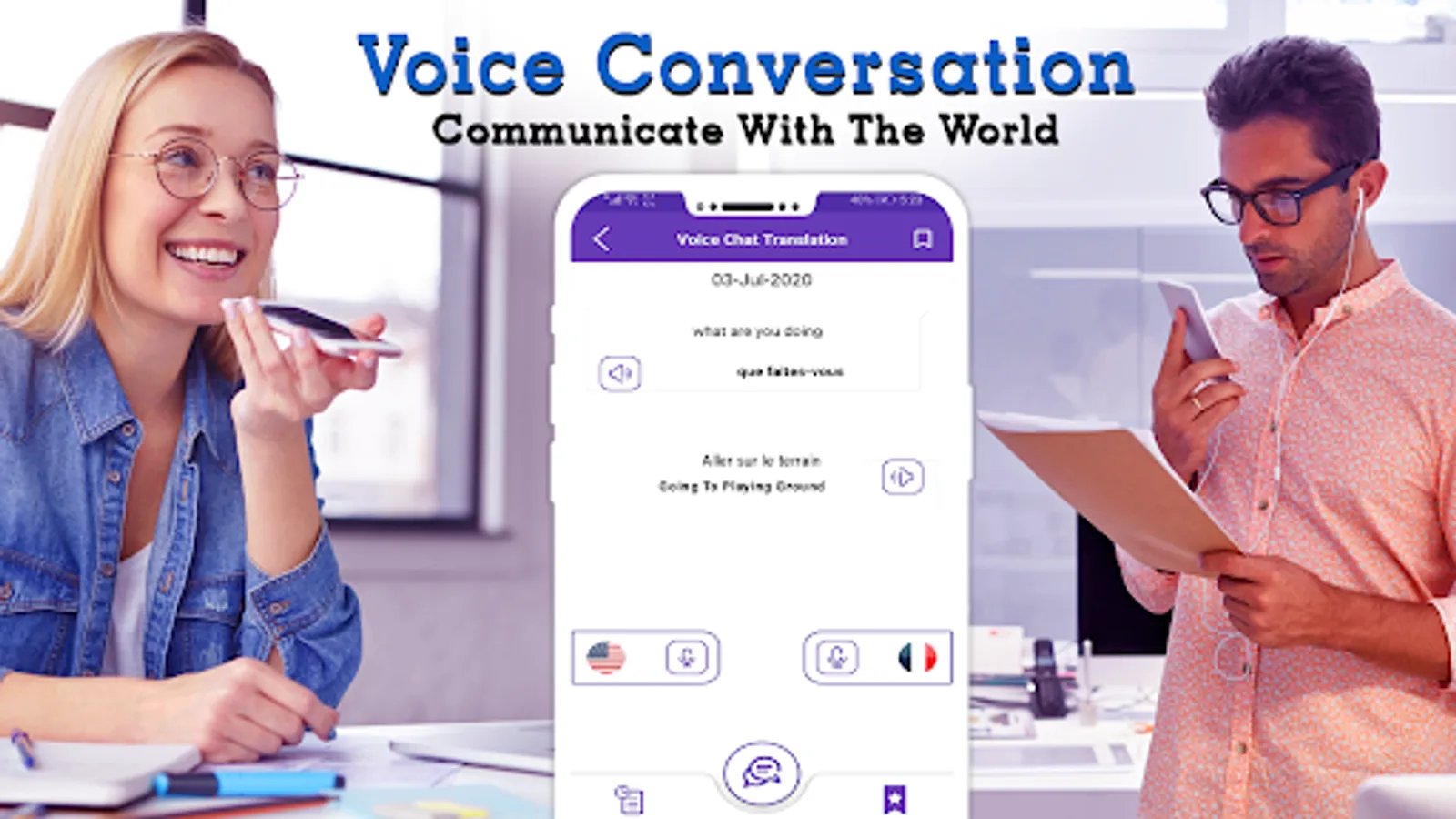 Voice translator all language is a professional translator to translate Text to speech or Speak to Text with a split screen mode for two or more participants having a all langugae voice conversation across multiple languages.