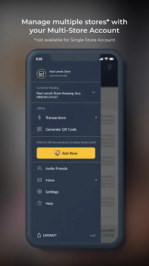 - Download transaction reports from all your QR payments / Sama-Sama Lokal outlets