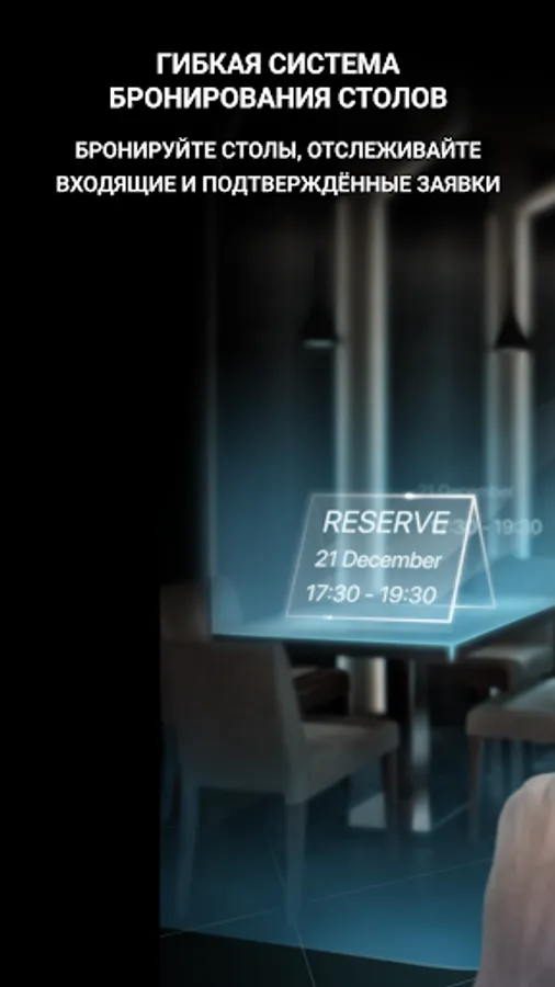 Customize the layout of the hall. In edit mode, you can fully reproduce the arrangement of tables as it looks in reality, taking into account the shape, number of seats and angle of rotation.