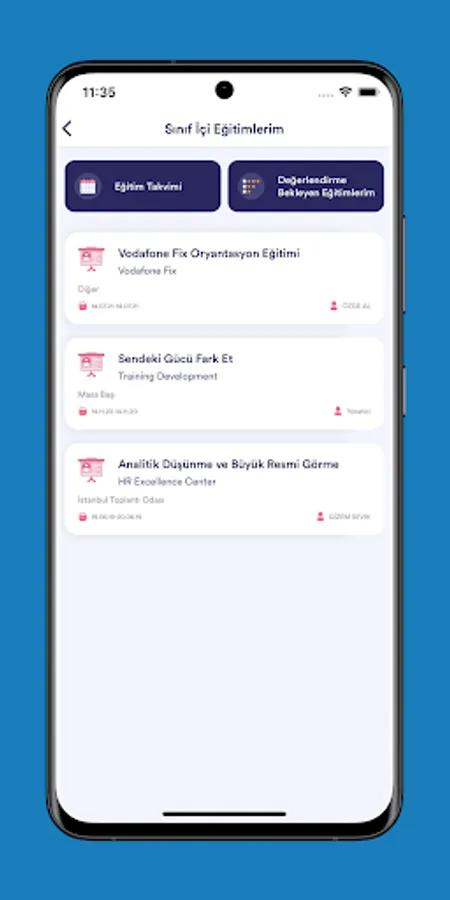 • You can examine the trainings given in the classroom environment and evaluate the trainings you have attended.