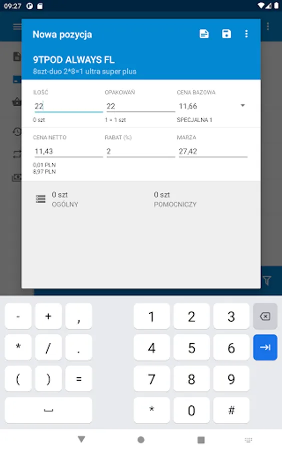 The application also allows you to: scan barcodes (including weighted ones), print any type of document (including reports and a list of settlements) and fiscalise receipts on Novitus and Posnet fiscal printers (a solution used especially in mobile sales).