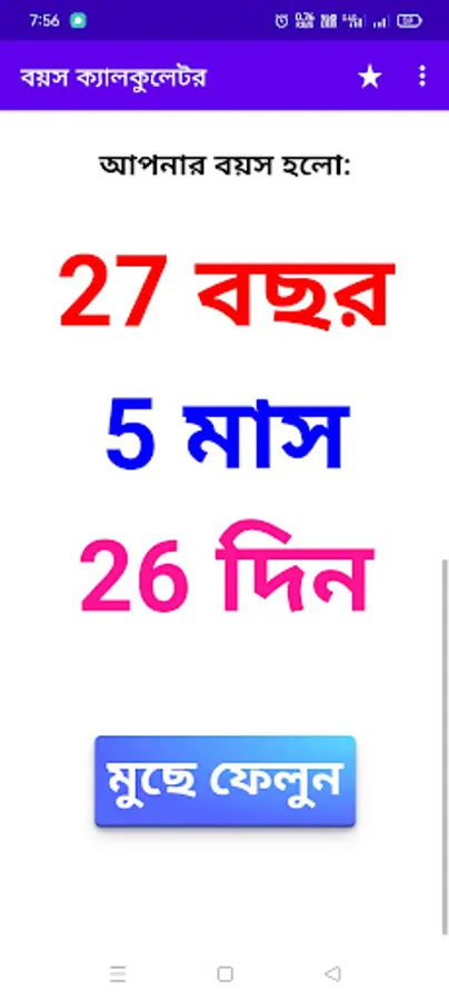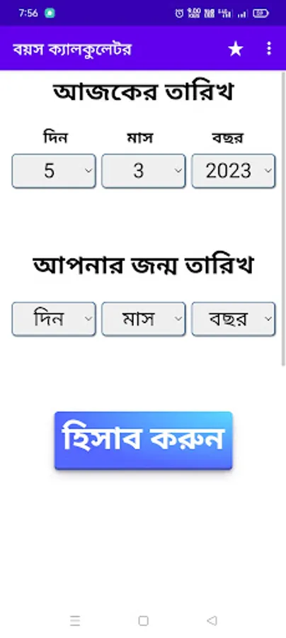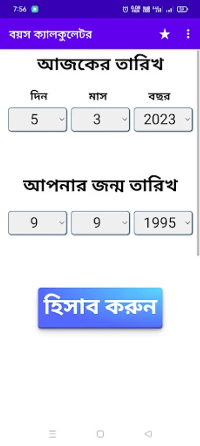 Boyos Calculator বয়স ক্যালকুলেটর is a useful app that helps you calculate your age in years, months, and days. With Boyos Calculator, you can easily keep track of your age and monitor your progress as you get older.