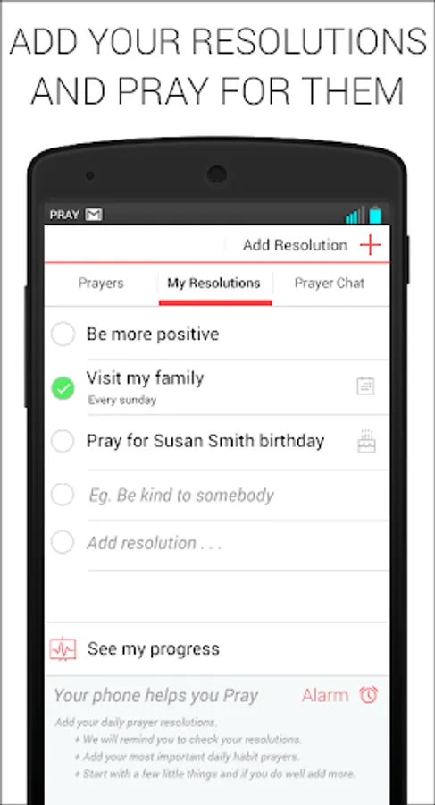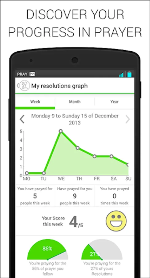 Download the application that is helping thousands of people! Share your prayers with your followers; pray for people from around the world; meet, chat and join in prayer with thousands of others at the same time; discover your progress with your personal resolutions, and feel part of this community that prays to change the world.