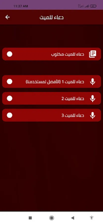 يمكنك التنقل بين أزرار تطبيق دعاء للميت بسهولة