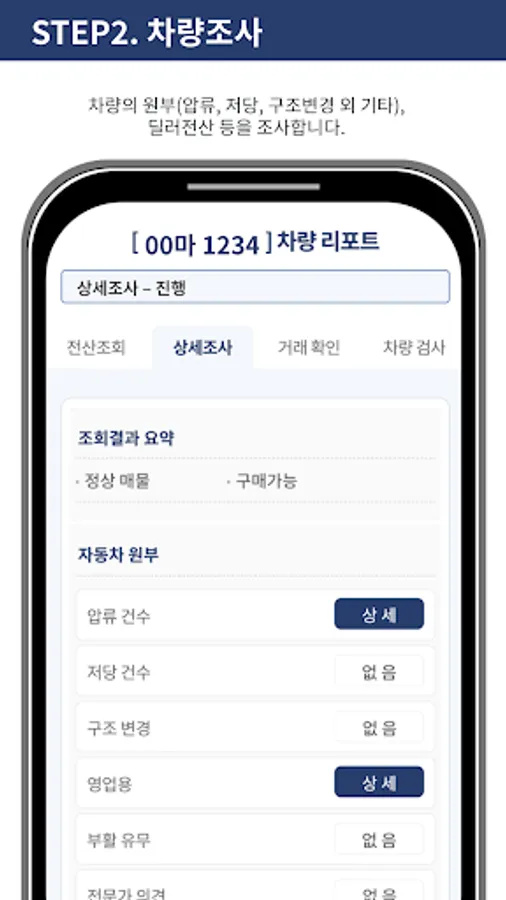 차량의 원부(압류, 저당, 구조변경 외 기타),딜러전산 등 을 조사합니다.