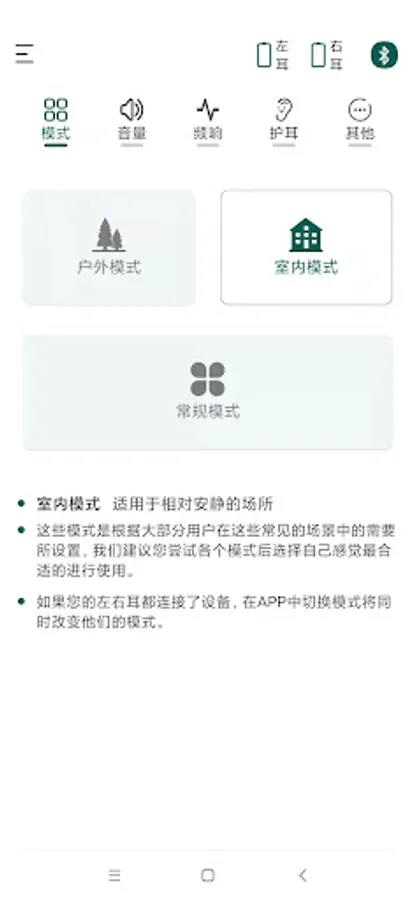 This is a smart TWS Bluetooth headset with bluetooth auxiliary listening. The APP can operate the headset quickly and intuitively. Personalized Settings of auxiliary listening scene mode switch - regular mode - outdoor mode - indoor mode and Bluetooth mode switch - normal mode - noise reduction mode - transparent mode and so on.