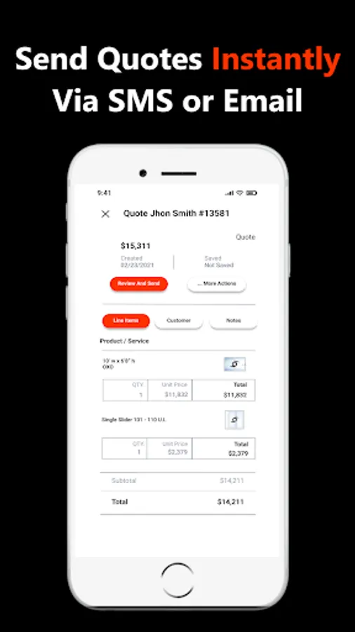 • SEND SMS OR EMAIL QUOTES INSTANTLY – Send quotes instantly to clients via SMS or Email with the push of a button. Every price quote is saved for each customer for easy access.