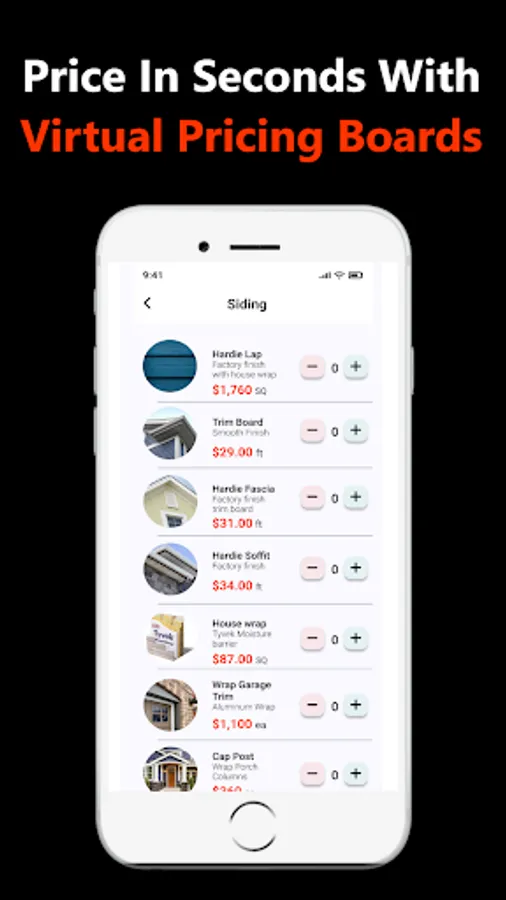 • CLOSE MORE DEALS – Price any job in seconds and present to homeowners an easy-to-follow pricing flow to reduce objections and give them the confidence to say YES on the spot.