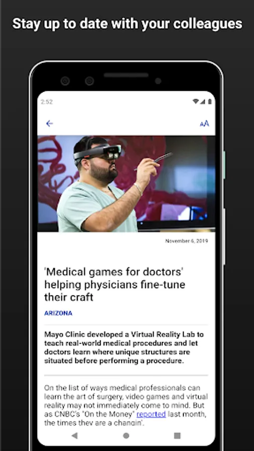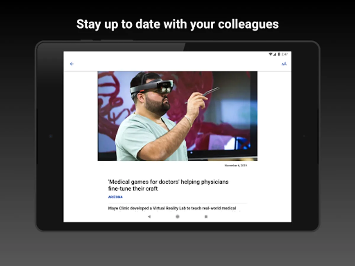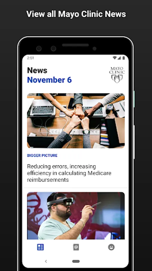 The Mayo Clinic Employee app makes your job easier when you're on-the-go. The app provides a convenient way for you and your team to access the latest Mayo Clinic news and search the Mayo Clinic directory — even when you're not at your desk or work station.