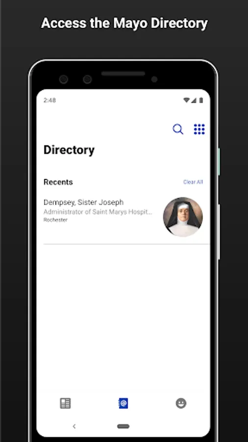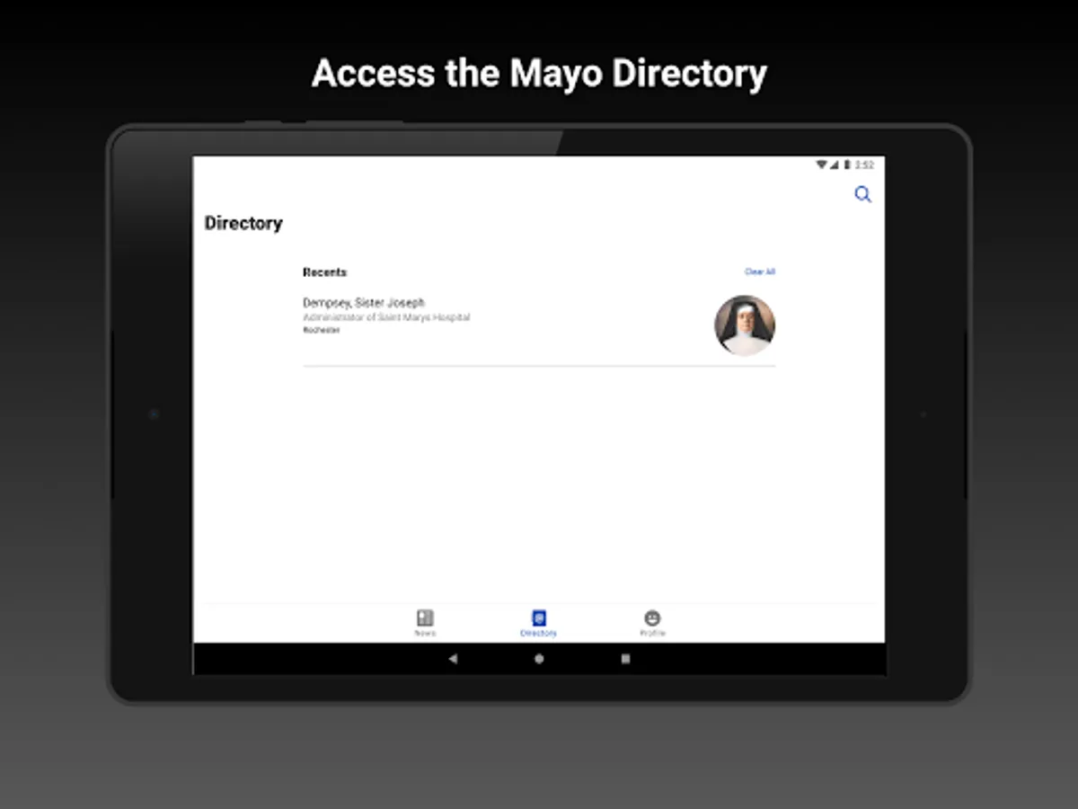 - Use the Mayo Clinic Directory. You can search the directory, favorite your team members for quick access, and get quick one-tap access to many different contacts.