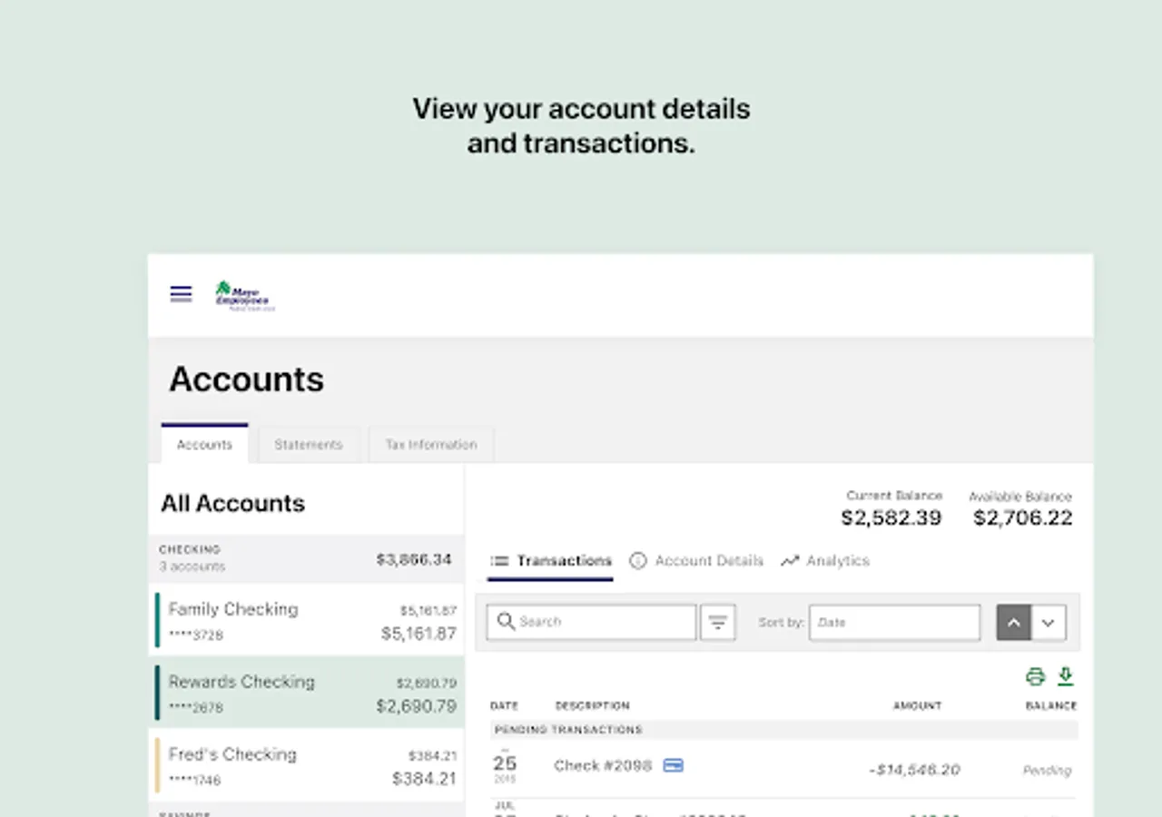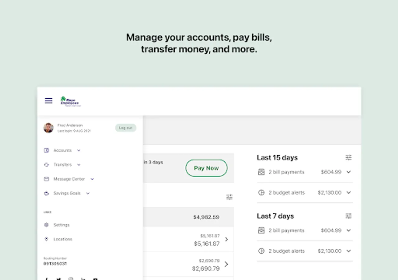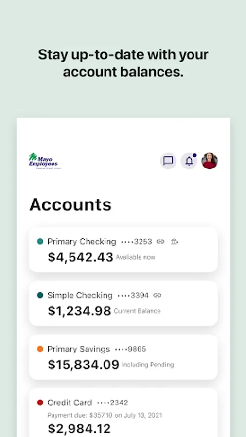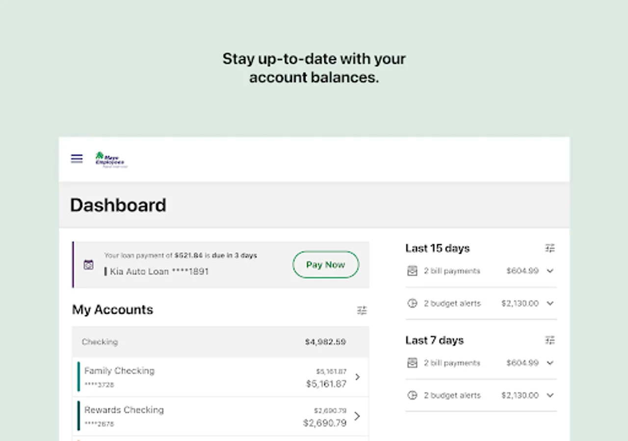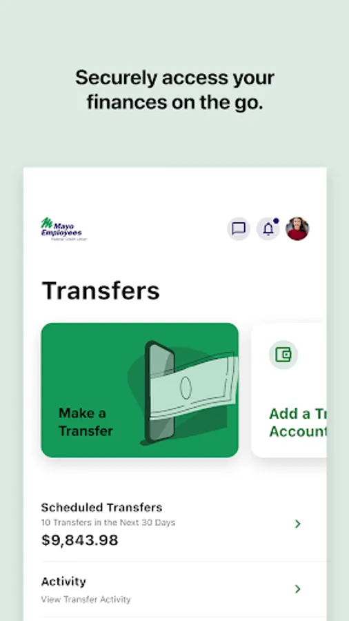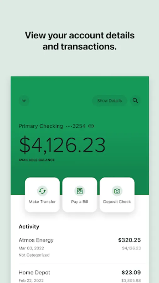 Access your accounts from your mobile device. See a snapshot of your accounts without logging in. Pay bills, deposit checks, transfer funds all within your mobile device.