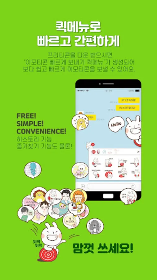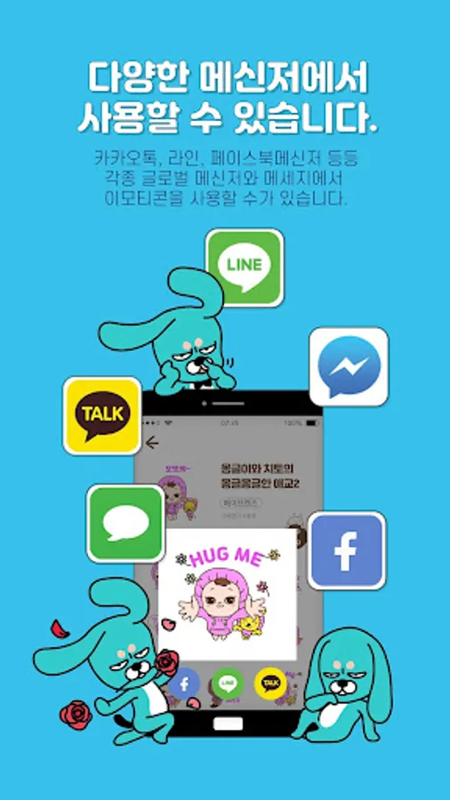Pretty Emoticons can be used in all messenger apps (KakaoTalk, LINE, Feme)!