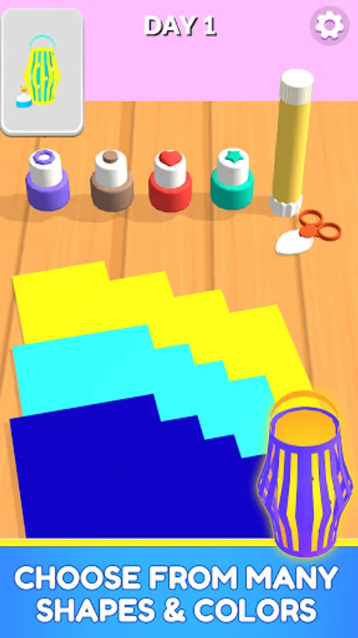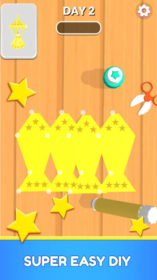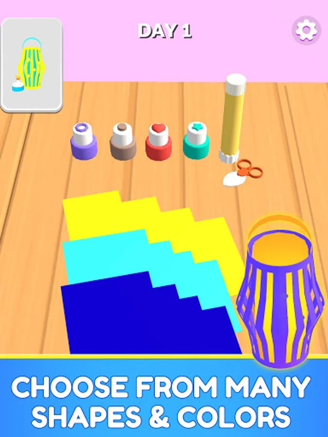You can create beautiful lanterns regardless of your skill level and expertise by following a few simple steps. The process is as simple as 1, 2, 3. You don't need to have any special skills to play this DIY game. Easy and intuitive controls make it simple to create a beautiful lantern by sliding and glueing the pieces together.