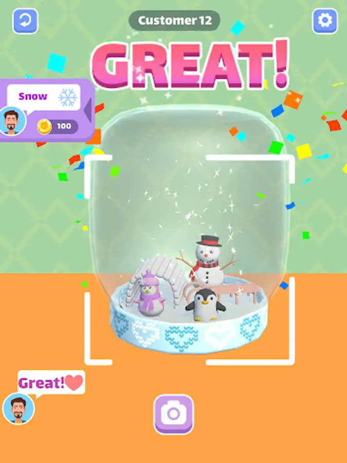 Welcome to the world of Snow Globe! Your goal is to craft the most beautiful, fun and memorable snow globe ever.