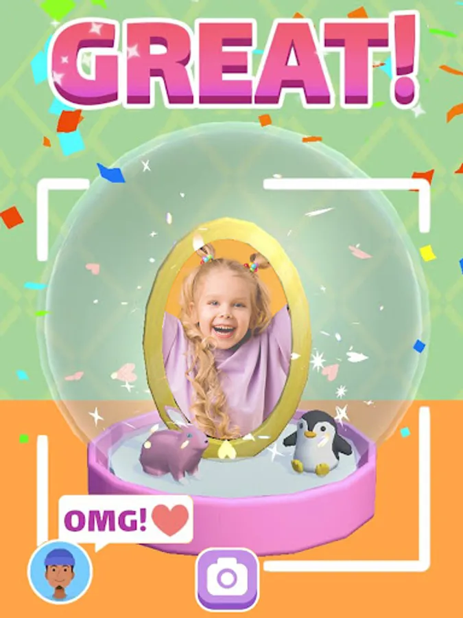 Create your miniature scene and decorate it with glitter and snowflakes. Watch your masterpiece come to life in 3D and share it with your friends!