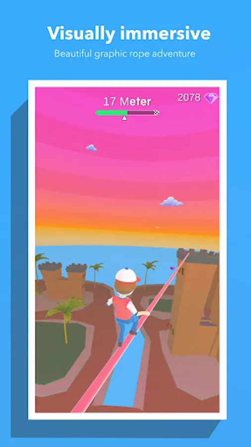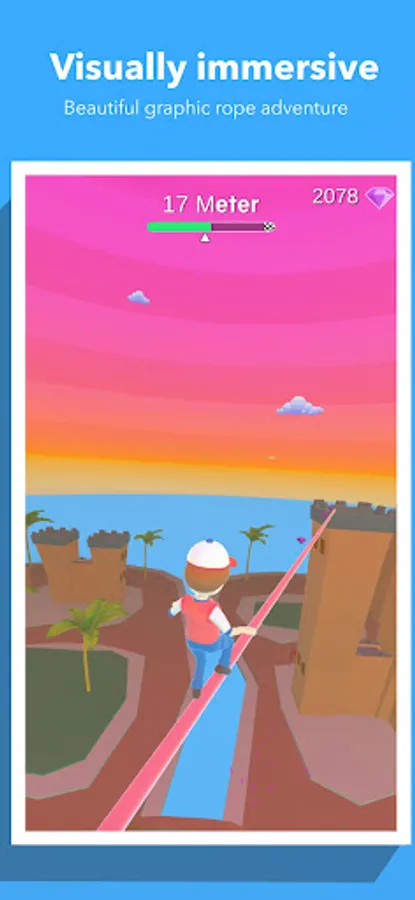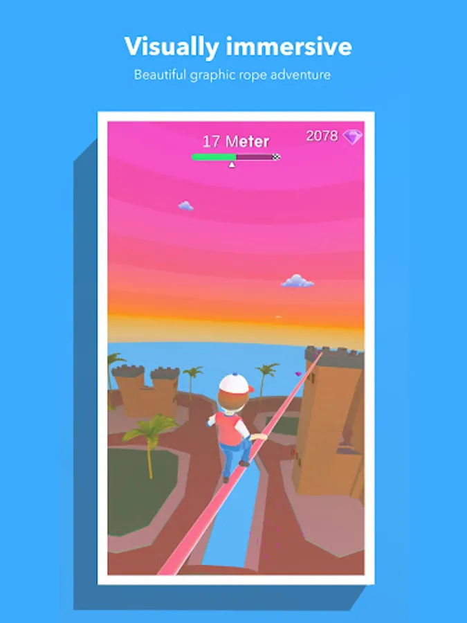 Play Slackline Master on your mobile device for an untethered experience that puts your balance and concentration to the test. Defy the escalating levels of difficulty and traverse a rope across one cliff to another