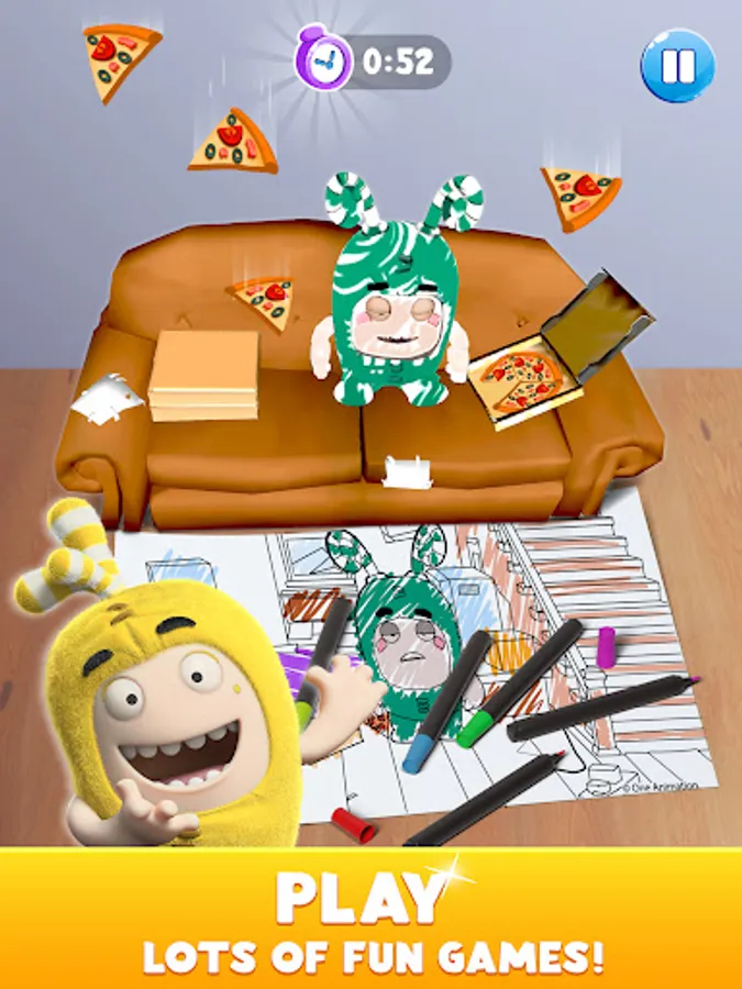 Now you can color and play 7 amazing mini-games with your favorite Oddbods characters as they come to life right in front of you!