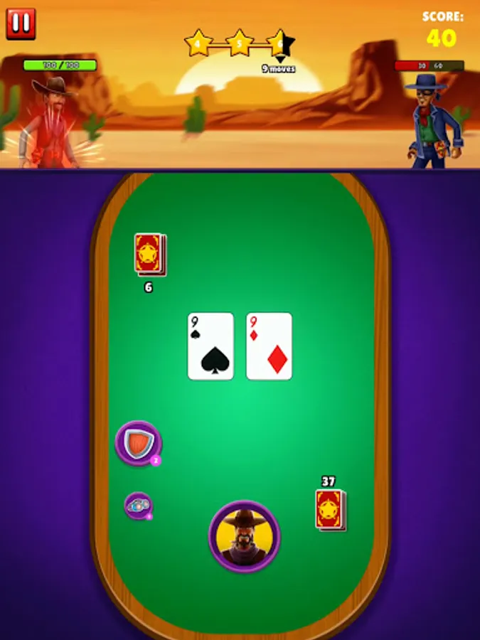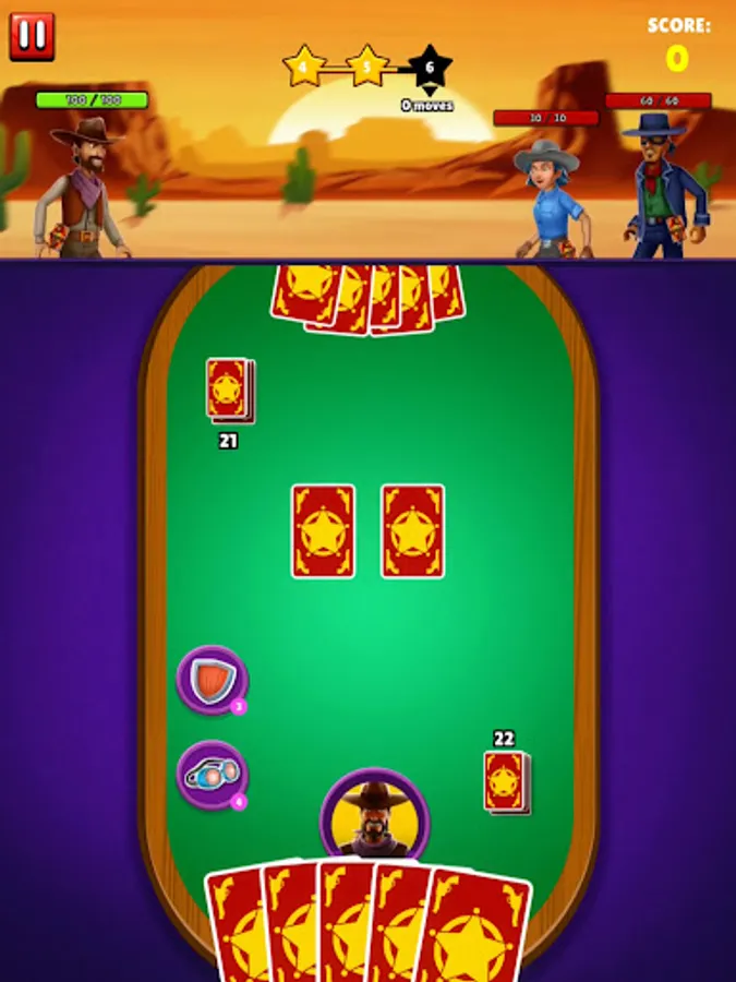 You will take on the role of a bounty hunter in the wild west in this new variation of the classical card game war. Your goal is to track down and defeat outlaws using a combination of chance and strategy. This game includes elements of role-playing, and you can play and collect rewards from hundreds of levels with different difficulties to improve your strength, face stronger enemies, and reach the final boss.