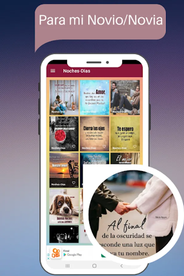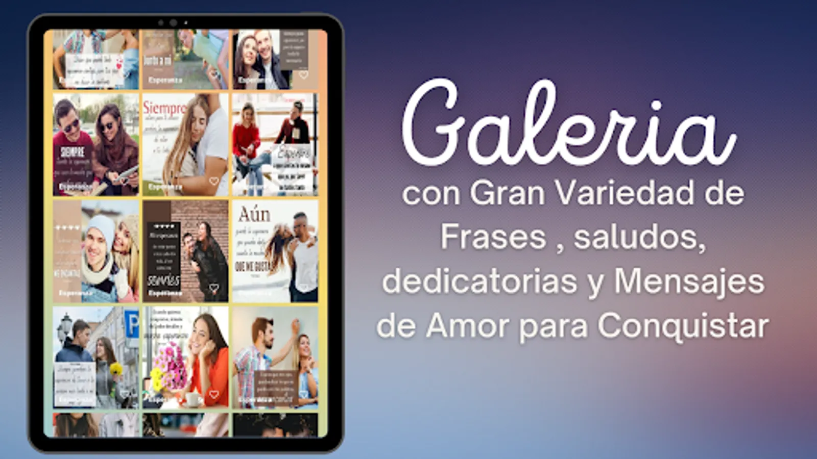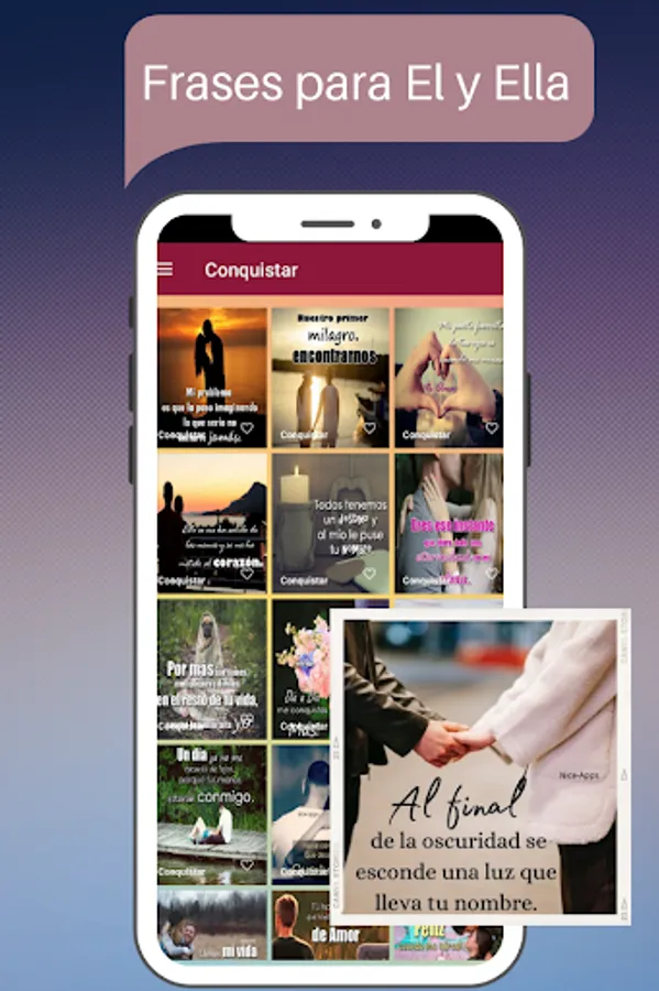 Phrases to Conquer is the ideal application, where you can choose from a collection of love Phrases to fall in love divided by categories. They are phrases designed with love to share in a simple way, sending phrases for my boyfriend or phrases for my girlfriend to say something nice.