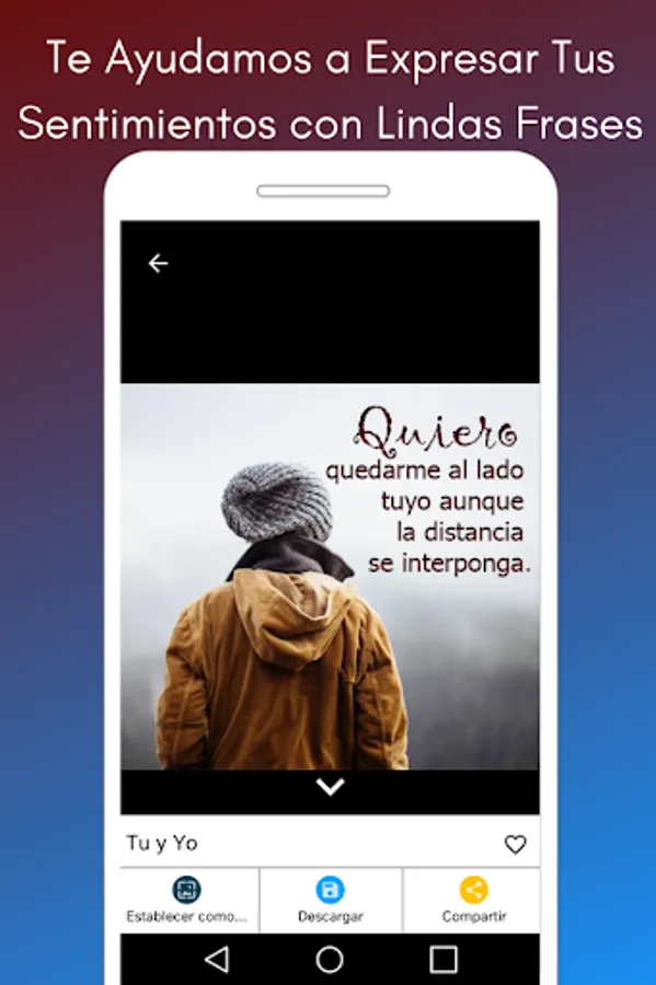 It is a very big feeling that should not be silenced and for this reason we are sure that this application will become your favorite and will help you to let him know with beautiful phrases of love what you feel in your heart.