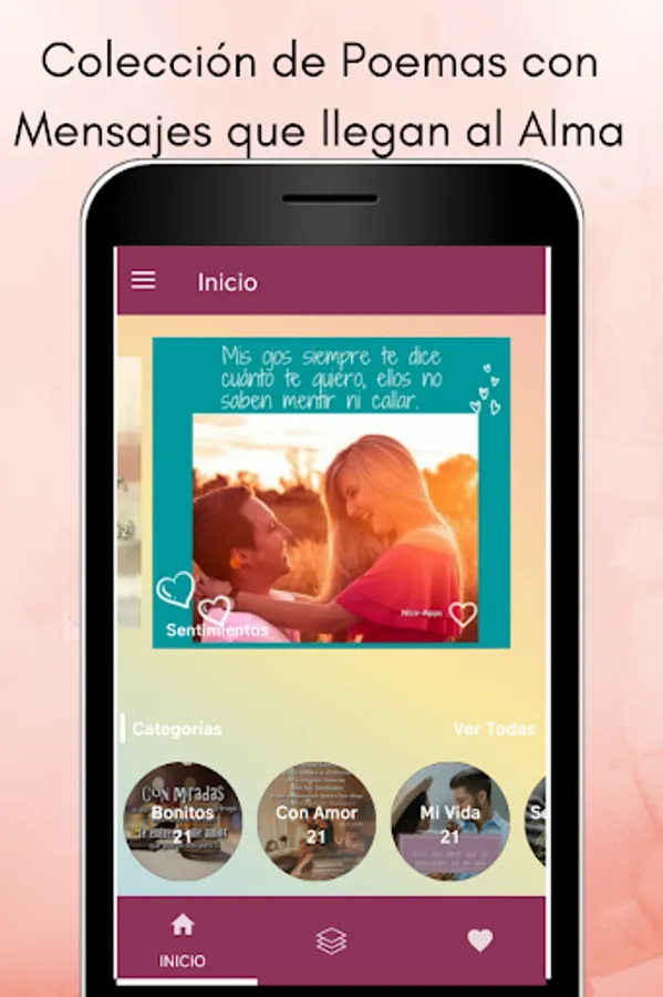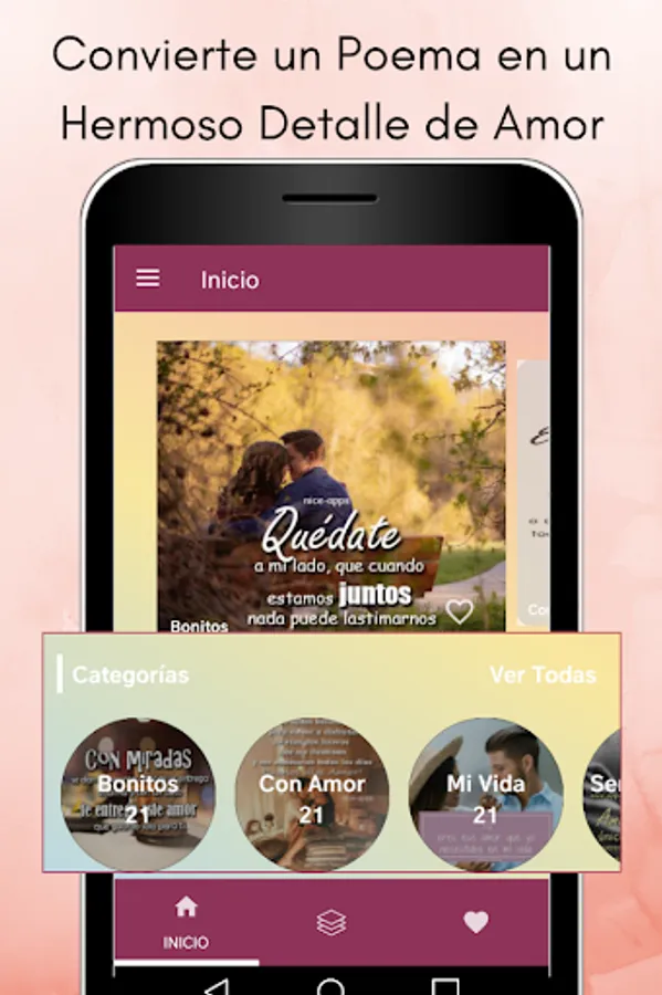 Poems of Love and Feelings is an application that contains a collection of the best love poems with images that you will have available on your mobile and best of all, they have been created in an Original way by our team.