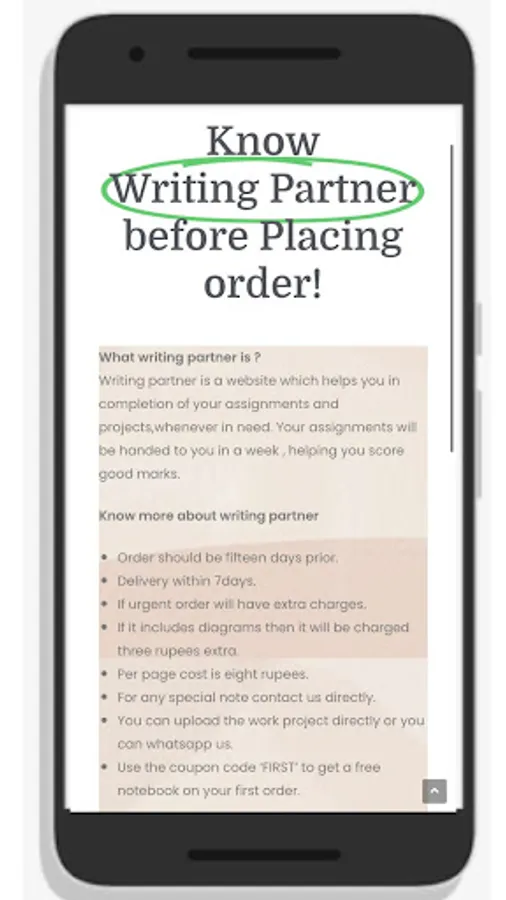 Writing partner is a website which helps you in completion of your assignments and projects,whenever in need. Your assignments will be handed to you in a week , helping you score good marks.