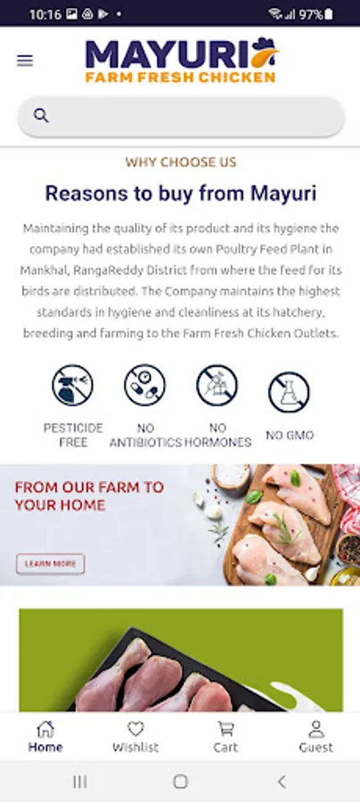 With our vast experience In the poultry industry, we have come up with Farm Fresh Chicken Outlets in 2008 in the brand name of Mayuri in 12+ different locations of Twin Cities and its surrounding places, with proven best tasting chicken adhering to the strictest norms of chicken farming. This superior quality chicken is now available at affordable prices.